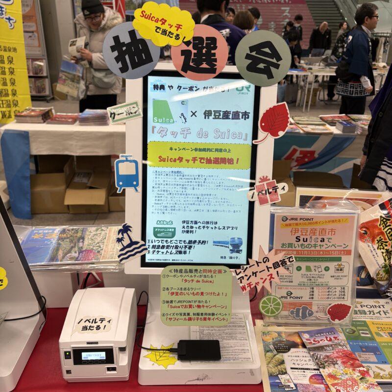 交通系ICカードをかざすことで、「抽選」「ポイント付与」「スタンプラリー」等を行うことが可能。